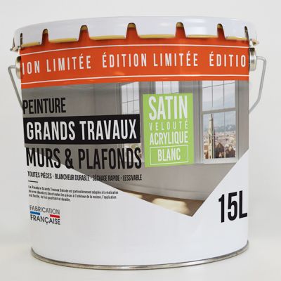 Peinture murs et plafonds blanc satin 15L | Castorama