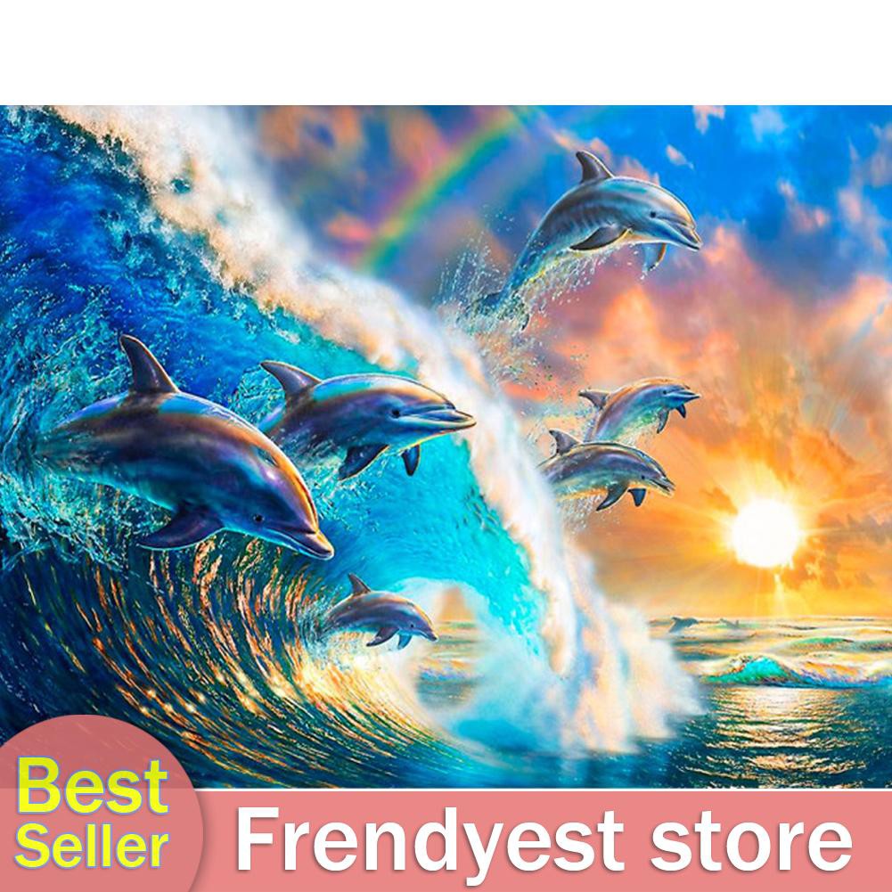 7lucky Diy 5d Diamond Painting By Number Kits Dolphin Cross Stitch Embroidery Arts Crafts Wall Decor Oil Painting Canvas 30 40cm Kits